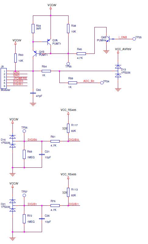 I looked in the hardware schematic and found the part that deals with the data lines. See the image below, don't forget to scroll down. Does this mean they run at 3.3V? (The fact that I can read a schematic does not mean I can understand itnxtreme wrote:Don't the data lines run at 3.3V logic? Or am I mistaken? I do remember that somebody on the NXTasy forums said that when interfacing with 3.3V sensors you could just substitute a 47K pullup for the 82K and connect the data lines directly. Maybe I'm mis-remembering something...