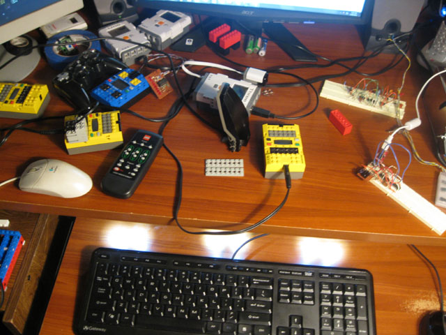 Since I had the camera out, I took a picture of what my "workbench" looks like right now. Notice both builds of the IR "tower" towards the right of the picture.