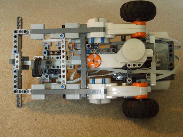 This is one I designed together with Juan Antonio Breña Moral for educational purposes. It has a very light design and has many points on which you can attach sensors. It doesn't require a lot of pieces to make. It has space on the back for a HiTechnic MUX.