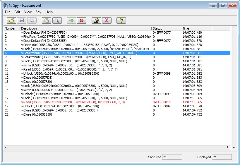 2. If the read buffer is empty (i.e., zero bytes pending), the nFANTOM100_iNXT_read() will block for about 10 seconds (?) and then return status -0x4000ffc2.