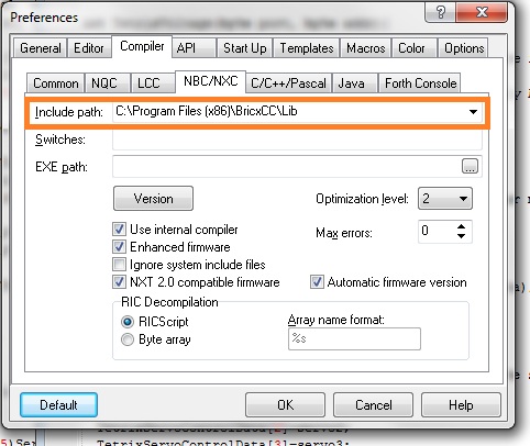 Muntoo, I think you missed my point. You do not have to save the libraries (or "myblocks.nxc") in the same directory... you can make the compiler look in an additional directory (where all the libraries or whatever else is located). It keeps me from have a zillion duplicates all over the place. It also means I only have to modify it in one place, and everything get modified.muntoo wrote:...Just put #include "myblocks.nxc" in all of your programs from now on. (And don't forget to put "myblocks.nxc" in the same folder as each of your programs.)