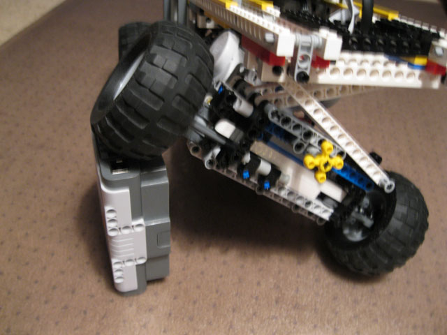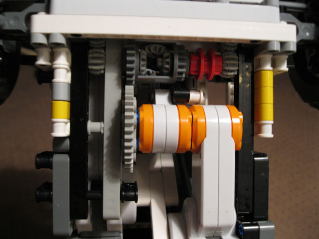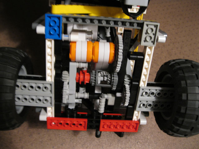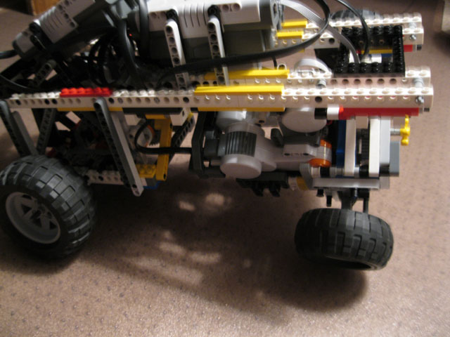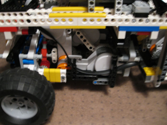 Even if I did do an axle drop, that would only get me clearance from the motor assembly to the ground; the axle case would have the same clearance. I guess that could be better, but that would certainly add weight, complexity, and possibly more bulk than it would be worth. This was actually more of an experiment to mess with some ideas I had, than to build a rock crawler. If I do someday want to build a lego rock crawler (to be a rock crawler, not just to test some ideas), I will have the pictures and experience of this for inspiration.